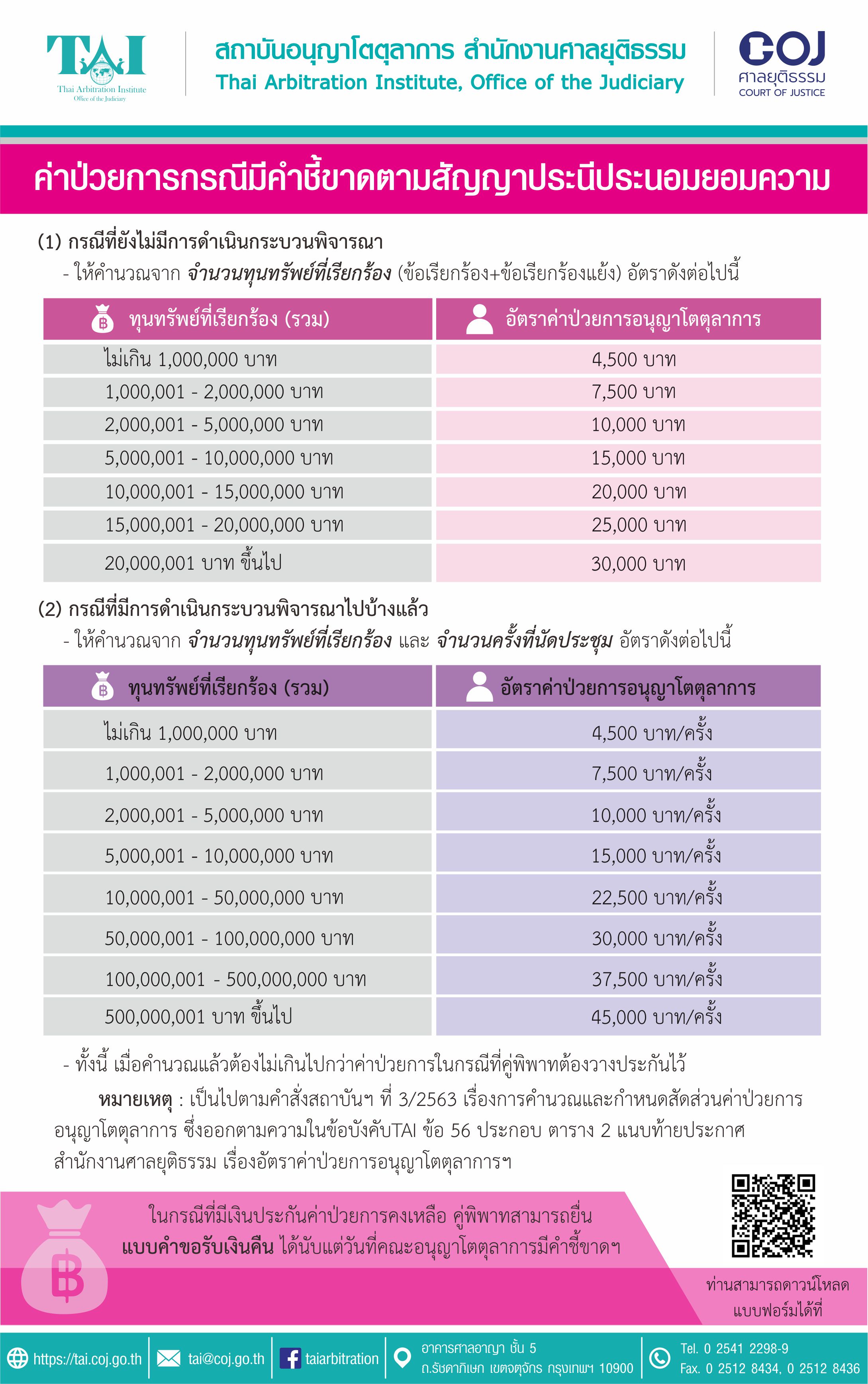 คำนวณ ค่าป่วยการอนุญาโตตุลาการ
