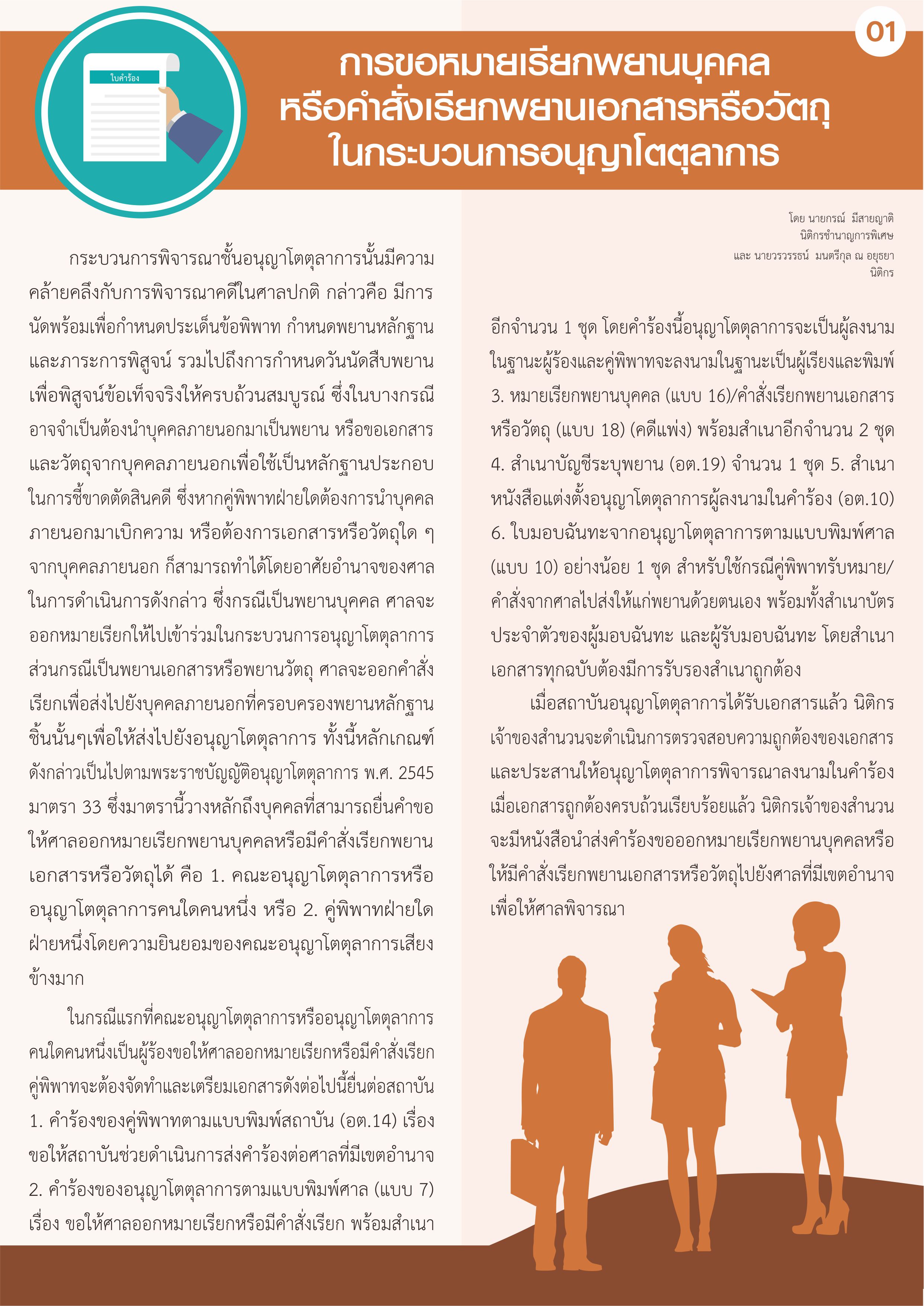 แบบฟอร์มและขั้นตอนในการขอหมายเรียกพยานบุคคลหรือพยานเอกสาร