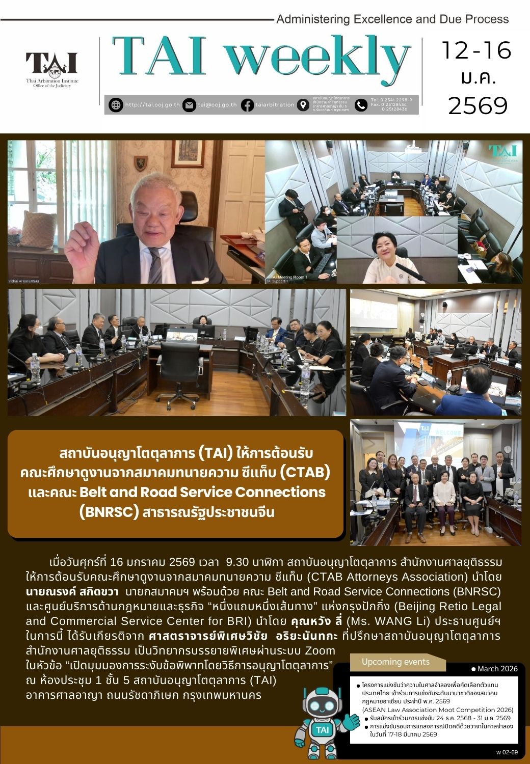 สถาบันอนุญาโตตุลาการ (TAI) ให้การต้อนรับคณะศึกษาดูงานจากสมาคมทนายความ ซีแท็บ (CTAB) และคณะ Belt and Road Service Connections (BNRSC) สาธารณรัฐประชาชนจีน