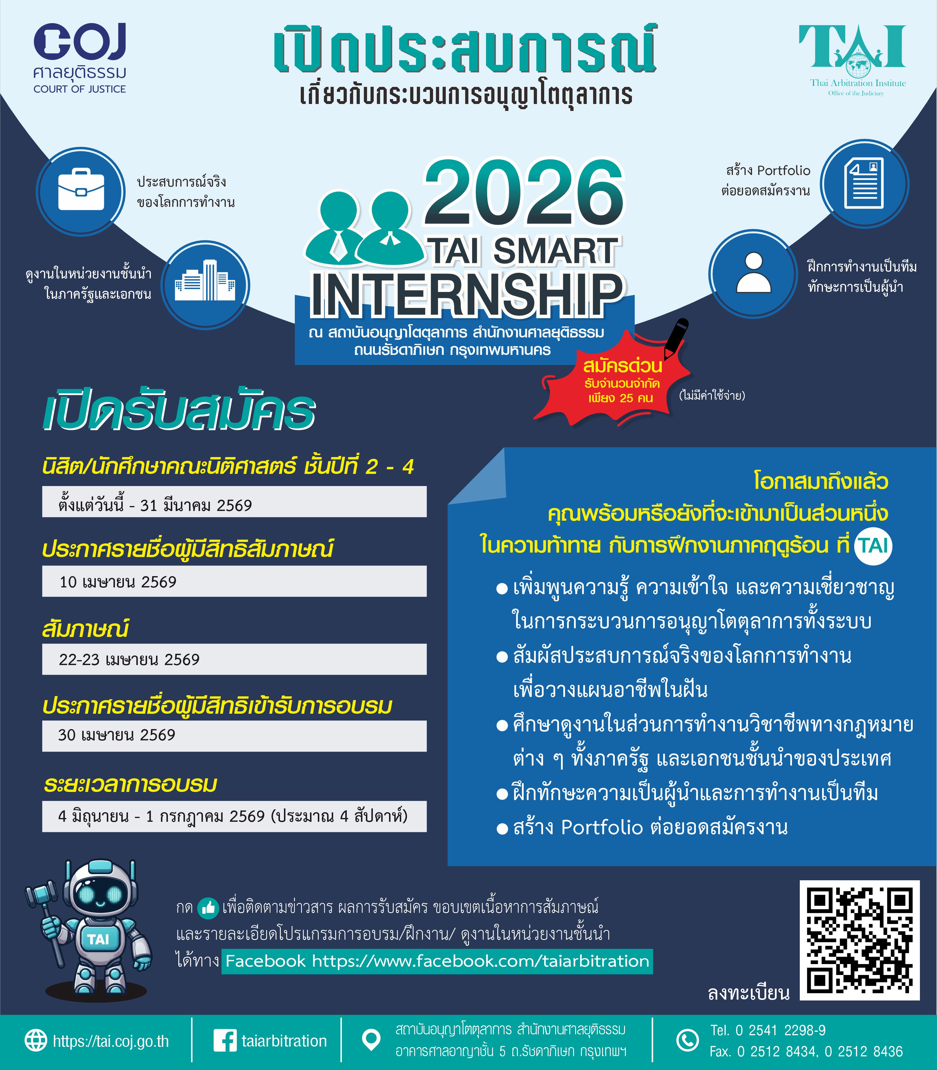 รายละเอียดเพิ่มเติมที่ Website: https://tai.coj.go.th/