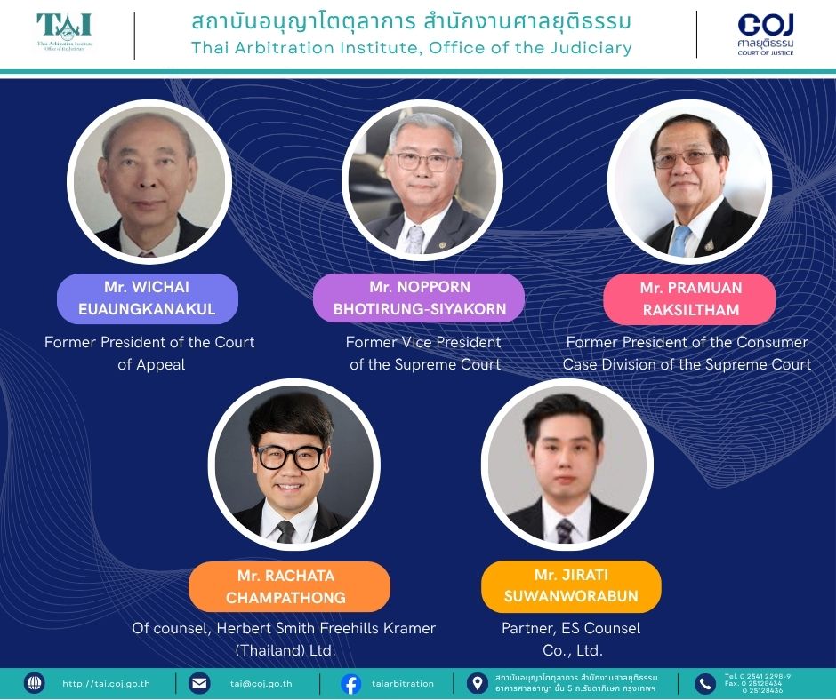The Thai Arbitration Institute (TAI) has recently admitted six distinguished arbitrators to its roster.
